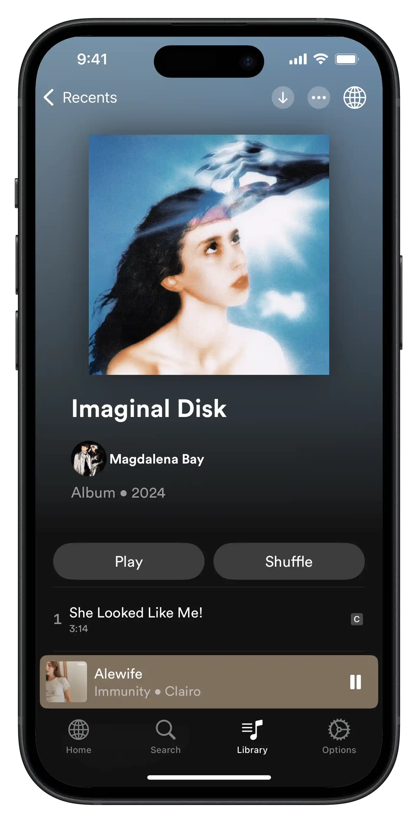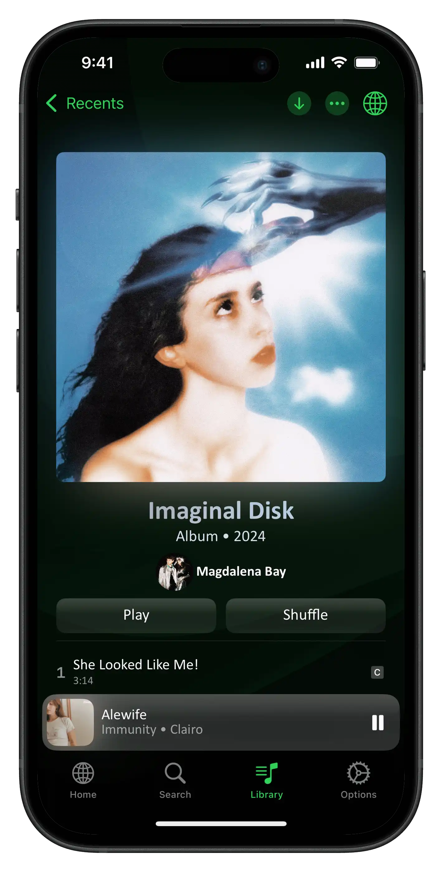 Pick a Vibe in the Explore page and discover the top albums. Add albums to your library and download to listen offline.